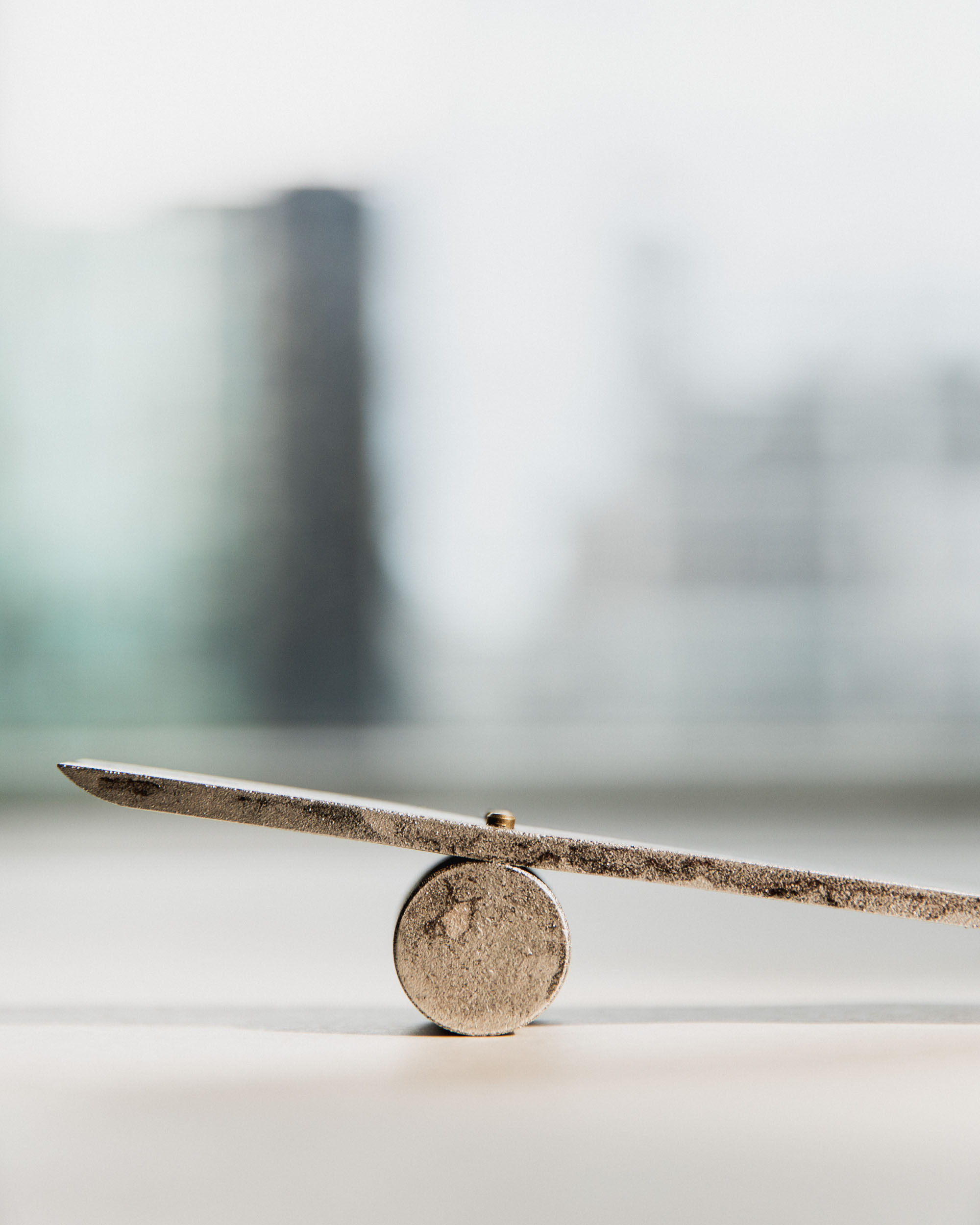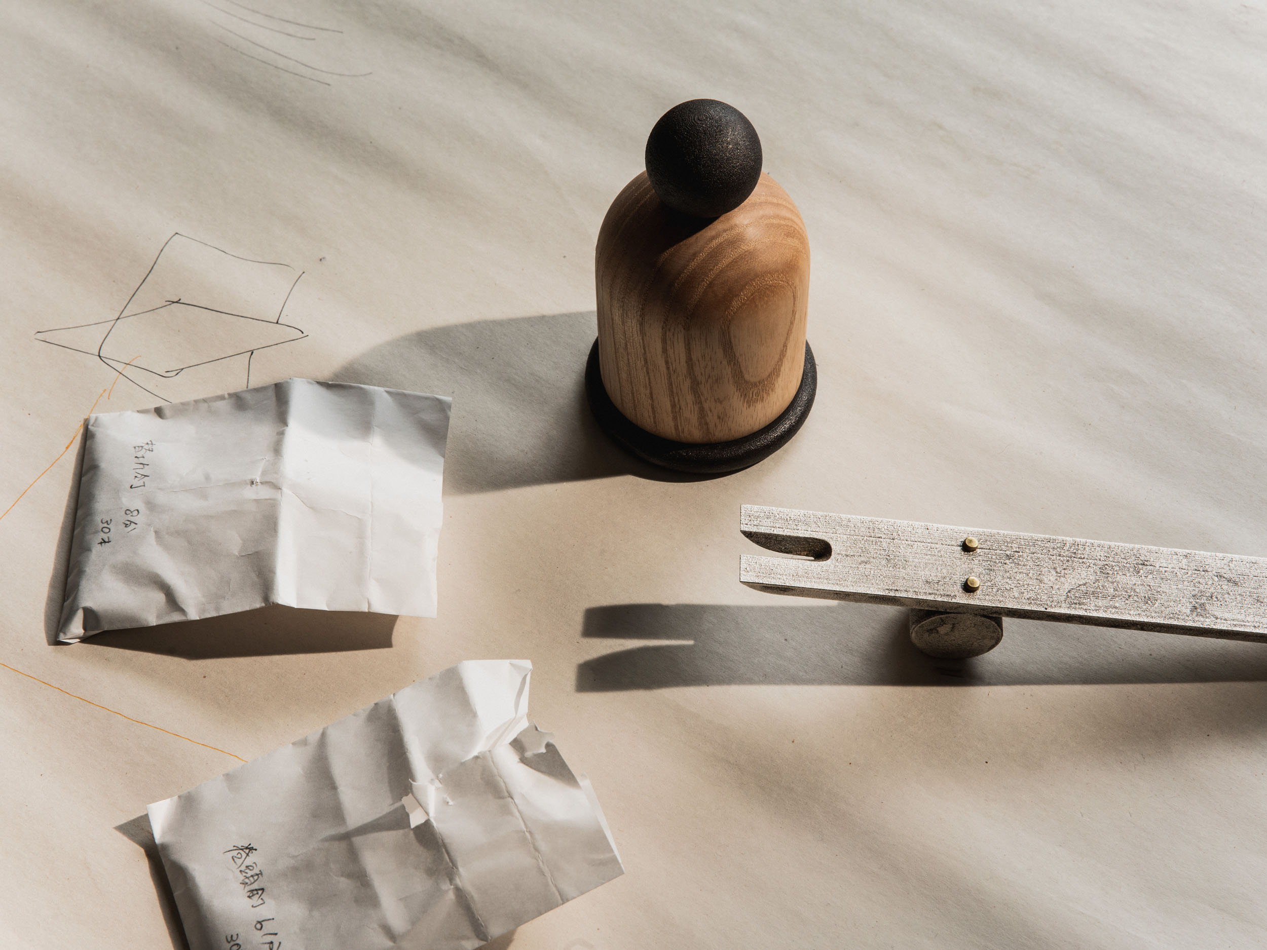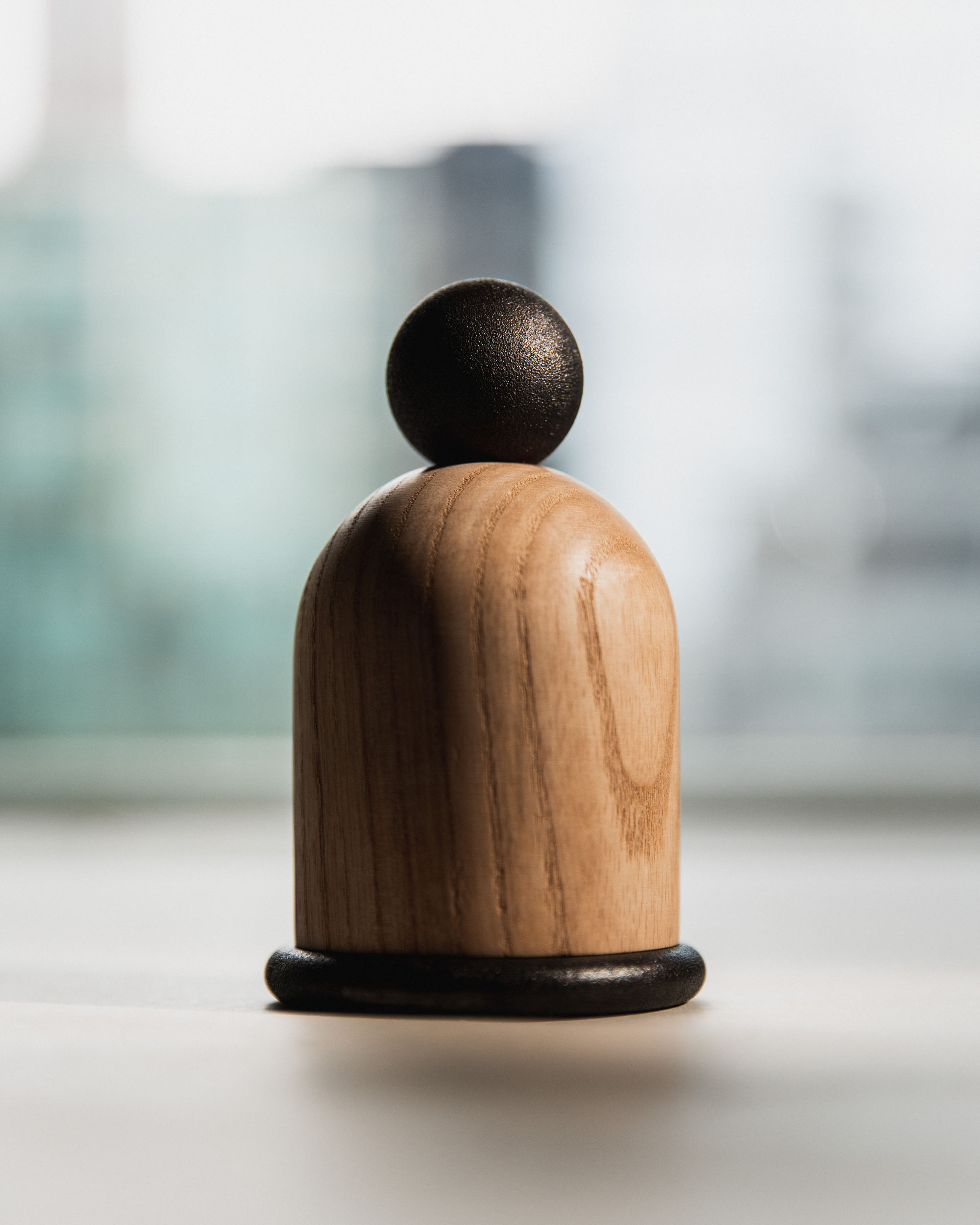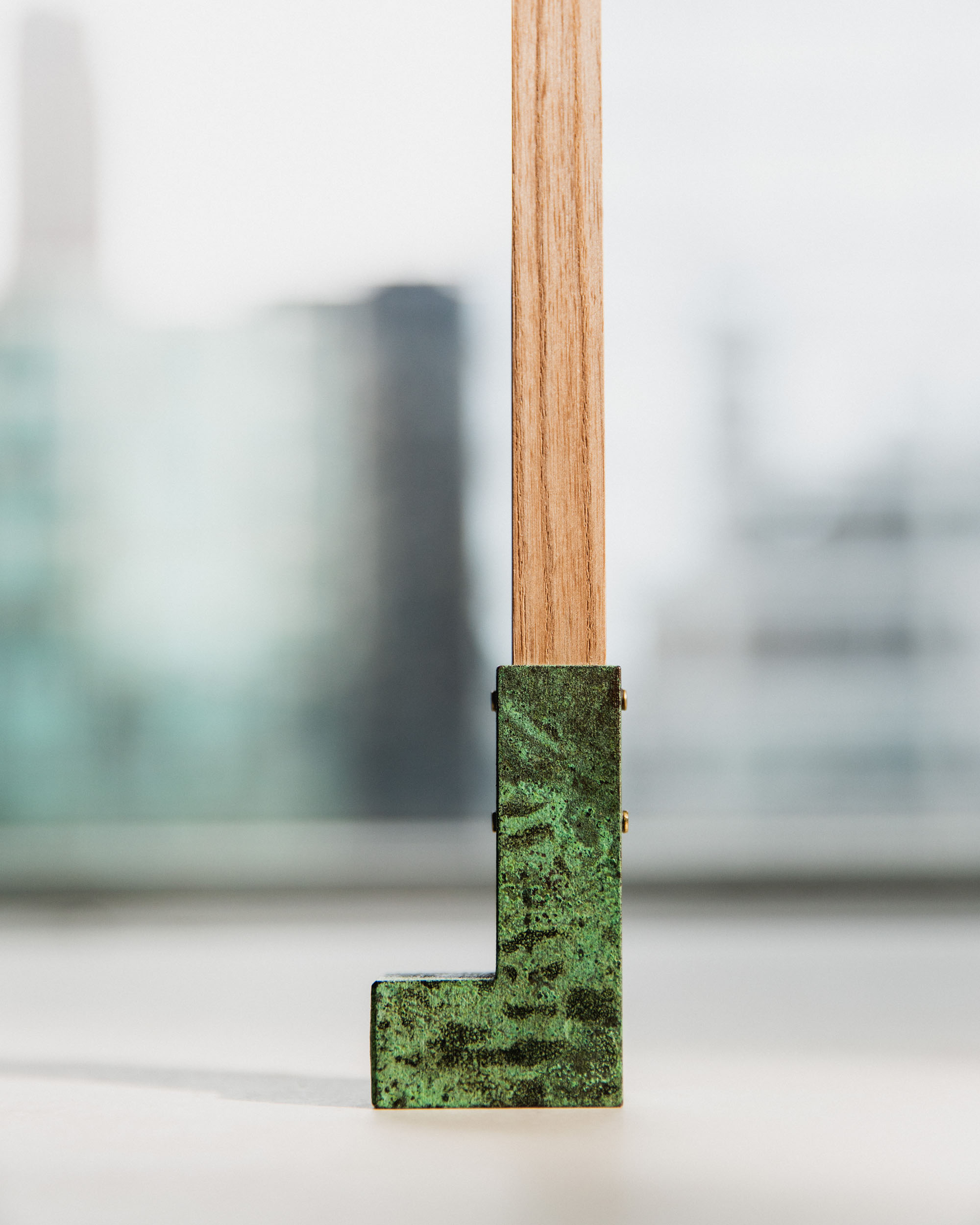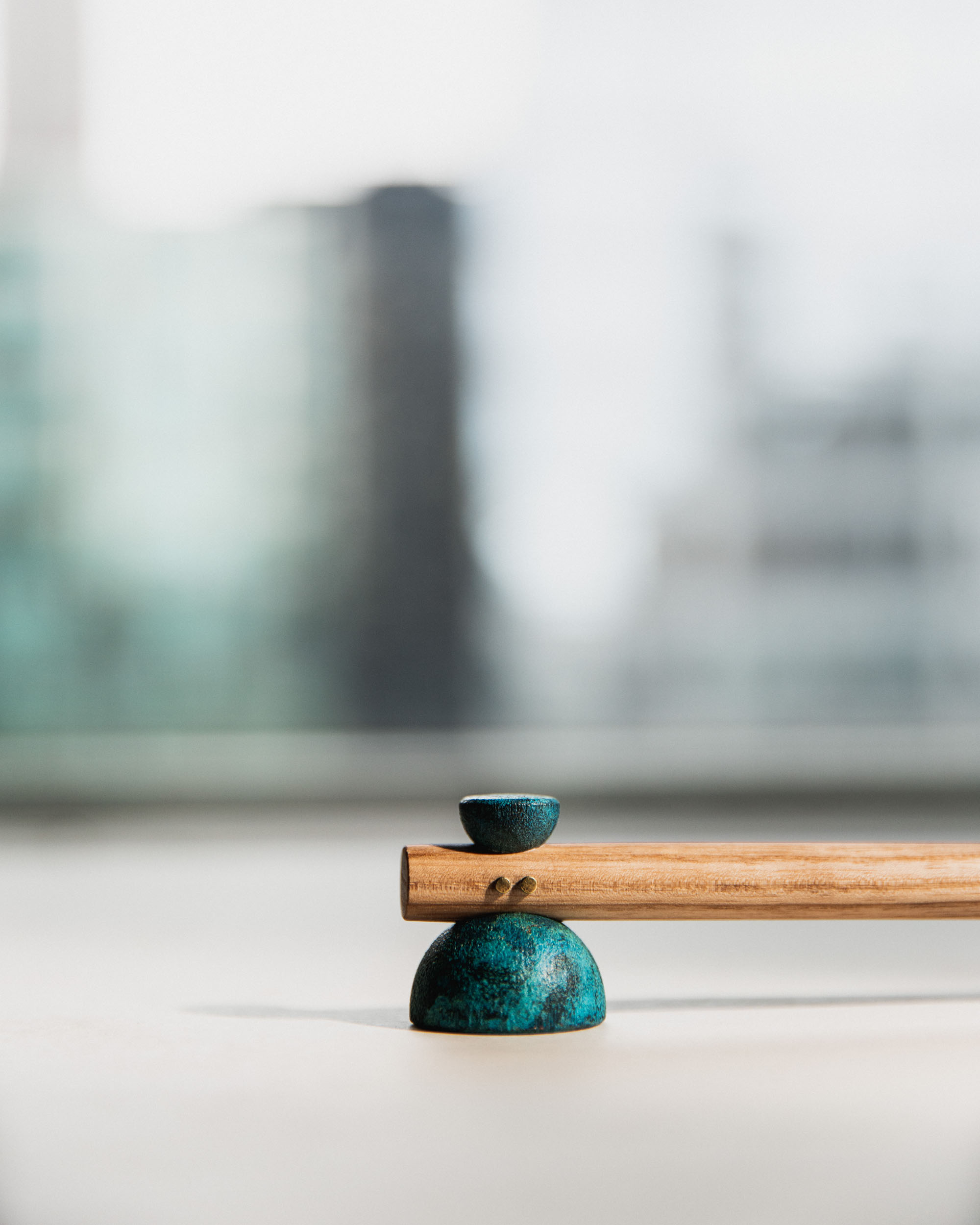 This collection of hammers is a formal and phonetic interpretation of the hammer. The title for each derives from Japanese onomatopoeia which reveals the subtle, Japanese sensitivity to material properties. The hammerheads were 3D printed in steel and then patinated with traditional colors by master craftsmen in Kyoto, Japan.