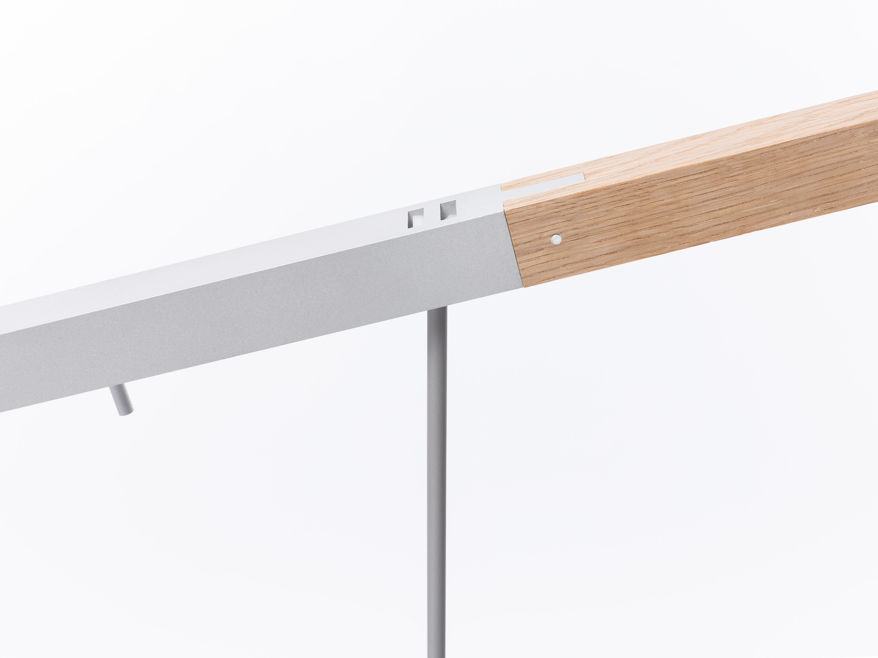 The Balance of Time explores the passing of time through subtle and ever-evolving shifts in climate. A section of oak is pinned to an aluminum bar forming a beam that is delicately balanced on an integrated fulcrum located at its center of mass. The section of oak, though technically dead, continues to breathe as it perpetually takes in and releases water from the air, maintaining equilibrium with annual shifts of wet and dry seasons. This eternal act alters the density of the wood, shifting the balance, and signaling the passage of time.