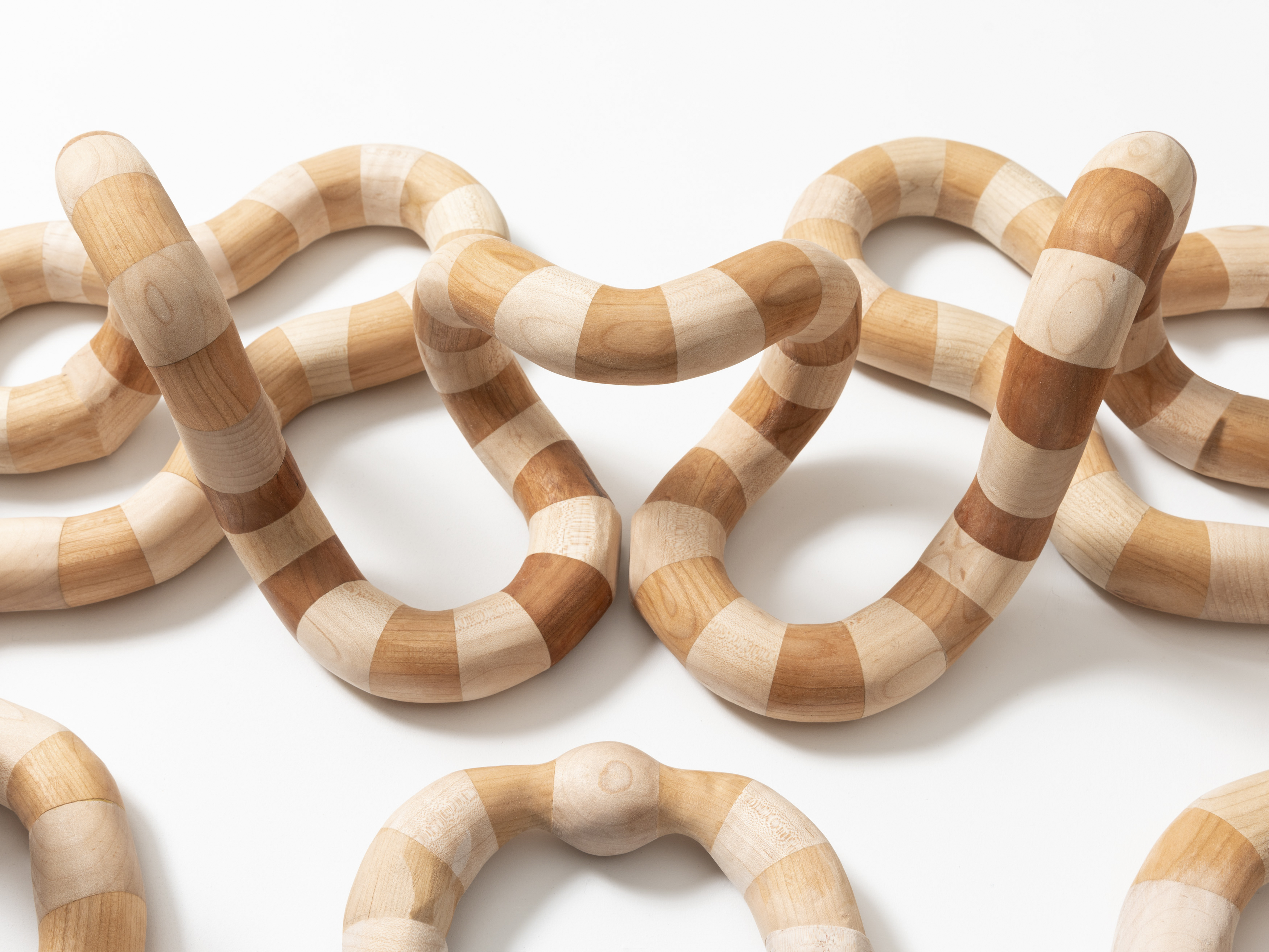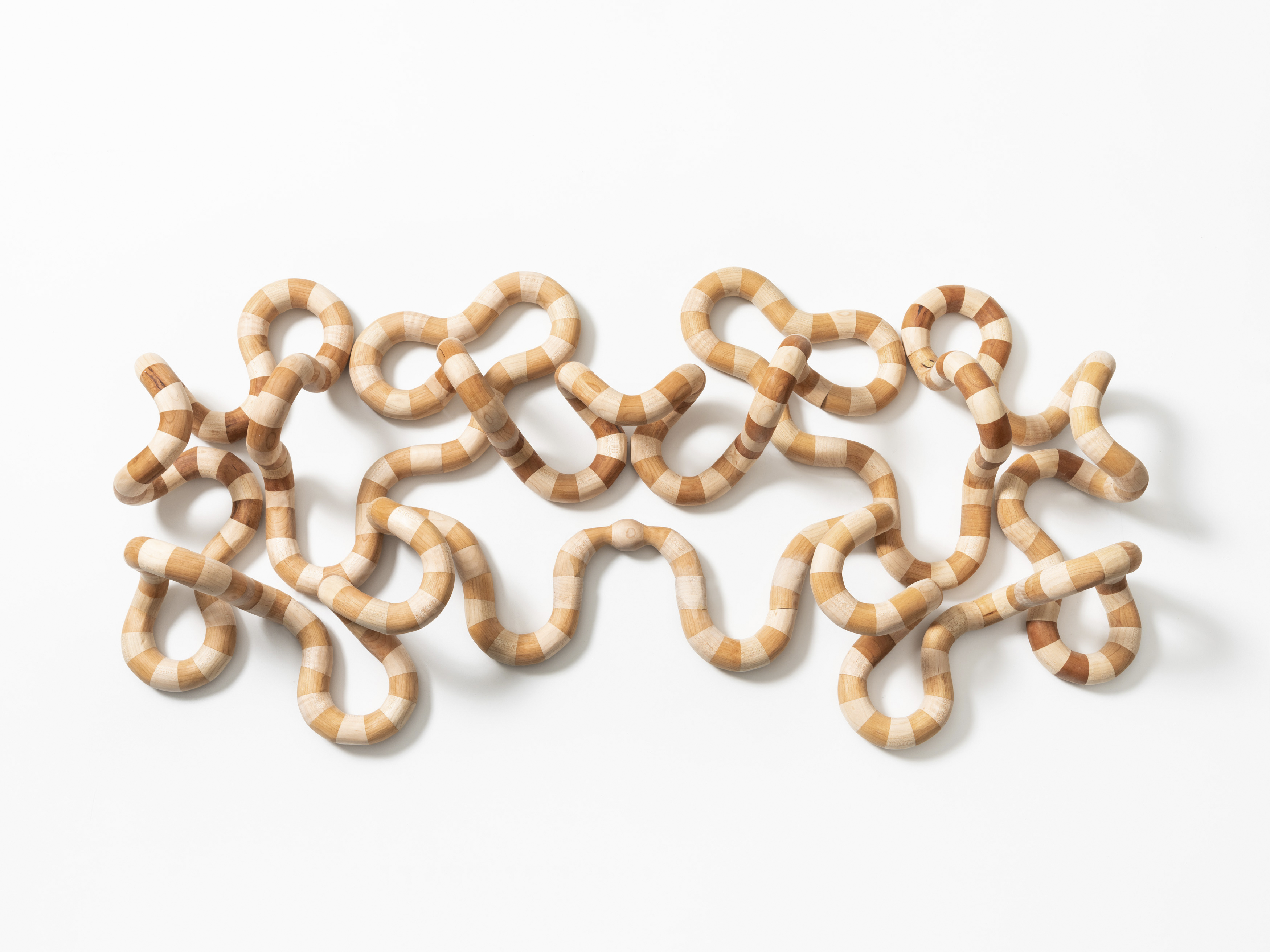 Calendar for Losing Count is an invitation to anticipate and meditate on the often disorienting and meandering course of a single year. Our days are varied–each is a small trajectory towards a new direction, accumulating spirals, u-turns, highs and lows along the way. Comprised of 365 connected individual wooden blocks, Calendar for Losing Count foregrounds the task of timekeeping as both exhausting and full of discovery. The inevitable moment of losing count becomes an opportunity to dwell upon and marvel at our ability to hold the past and the future in the present.