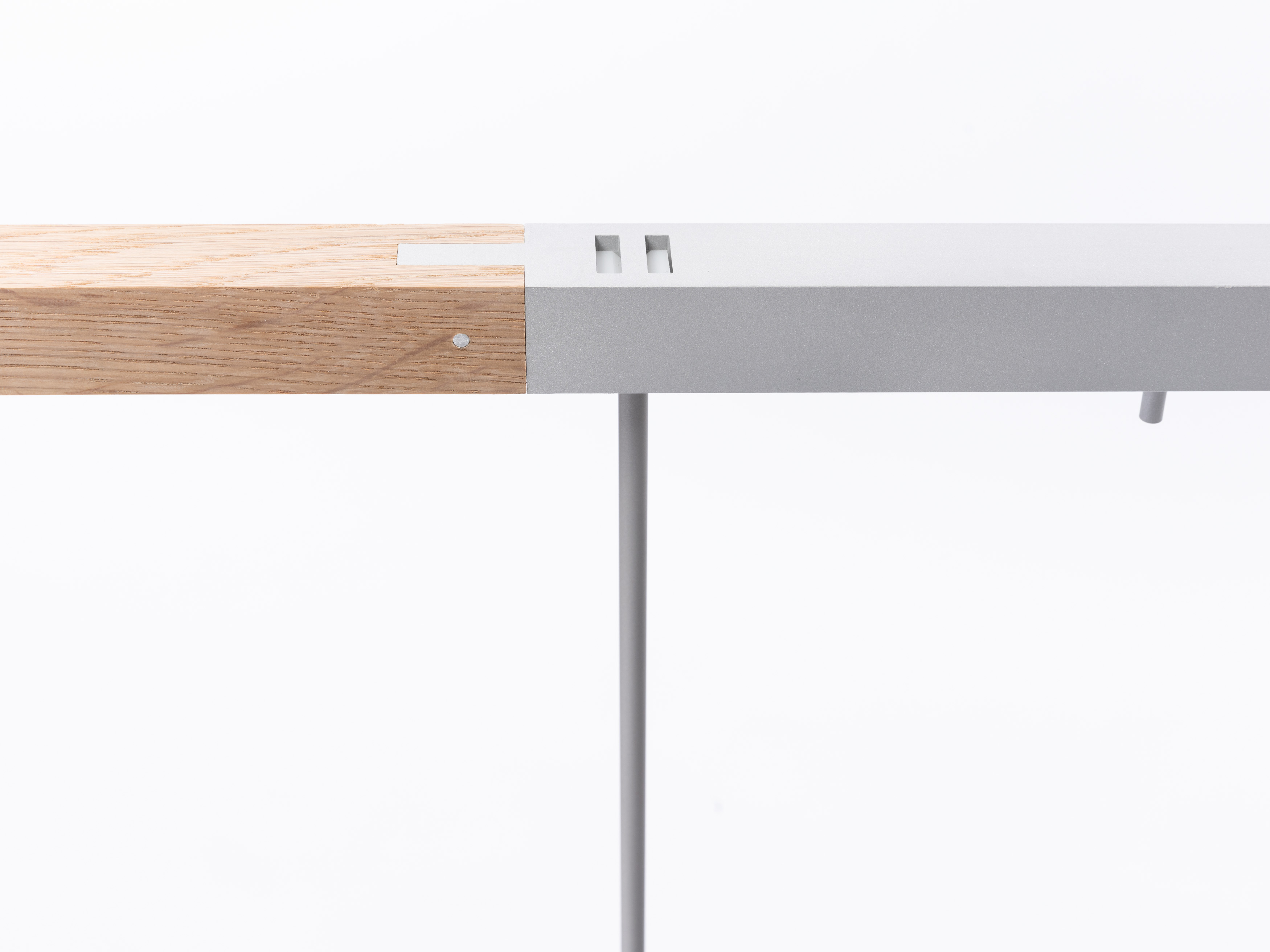 The Balance of Time explores the passing of time through subtle and ever-evolving shifts in climate. A section of oak is pinned to an aluminum bar forming a beam that is delicately balanced on an integrated fulcrum located at its center of mass. The section of oak, though technically dead, continues to breathe as it perpetually takes in and releases water from the air, maintaining equilibrium with annual shifts of wet and dry seasons. This eternal act alters the density of the wood, shifting the balance, and signaling the passage of time.