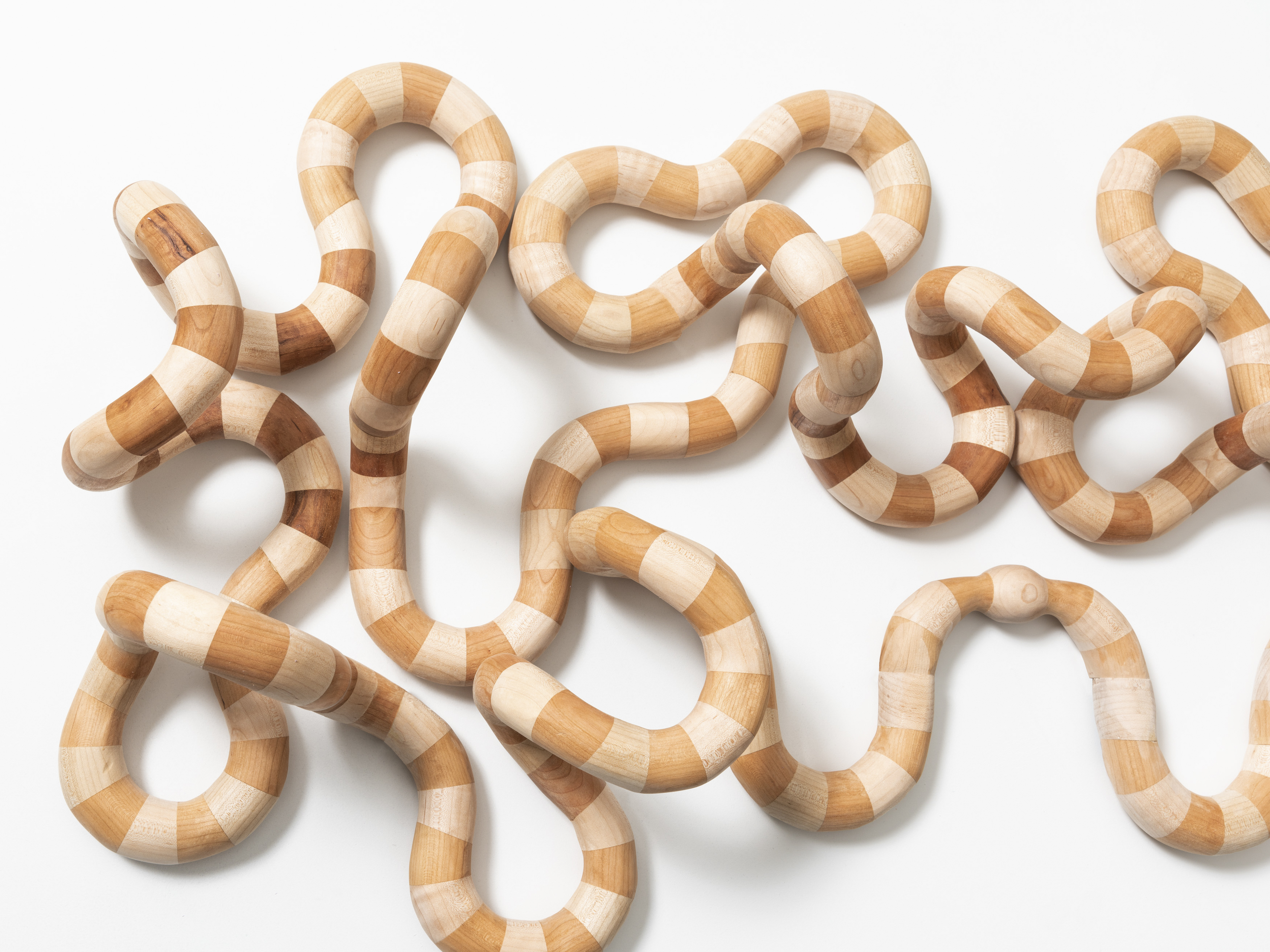 Calendar for Losing Count is an invitation to anticipate and meditate on the often disorienting and meandering course of a single year. Our days are varied–each is a small trajectory towards a new direction, accumulating spirals, u-turns, highs and lows along the way. Comprised of 365 connected individual wooden blocks, Calendar for Losing Count foregrounds the task of timekeeping as both exhausting and full of discovery. The inevitable moment of losing count becomes an opportunity to dwell upon and marvel at our ability to hold the past and the future in the present.